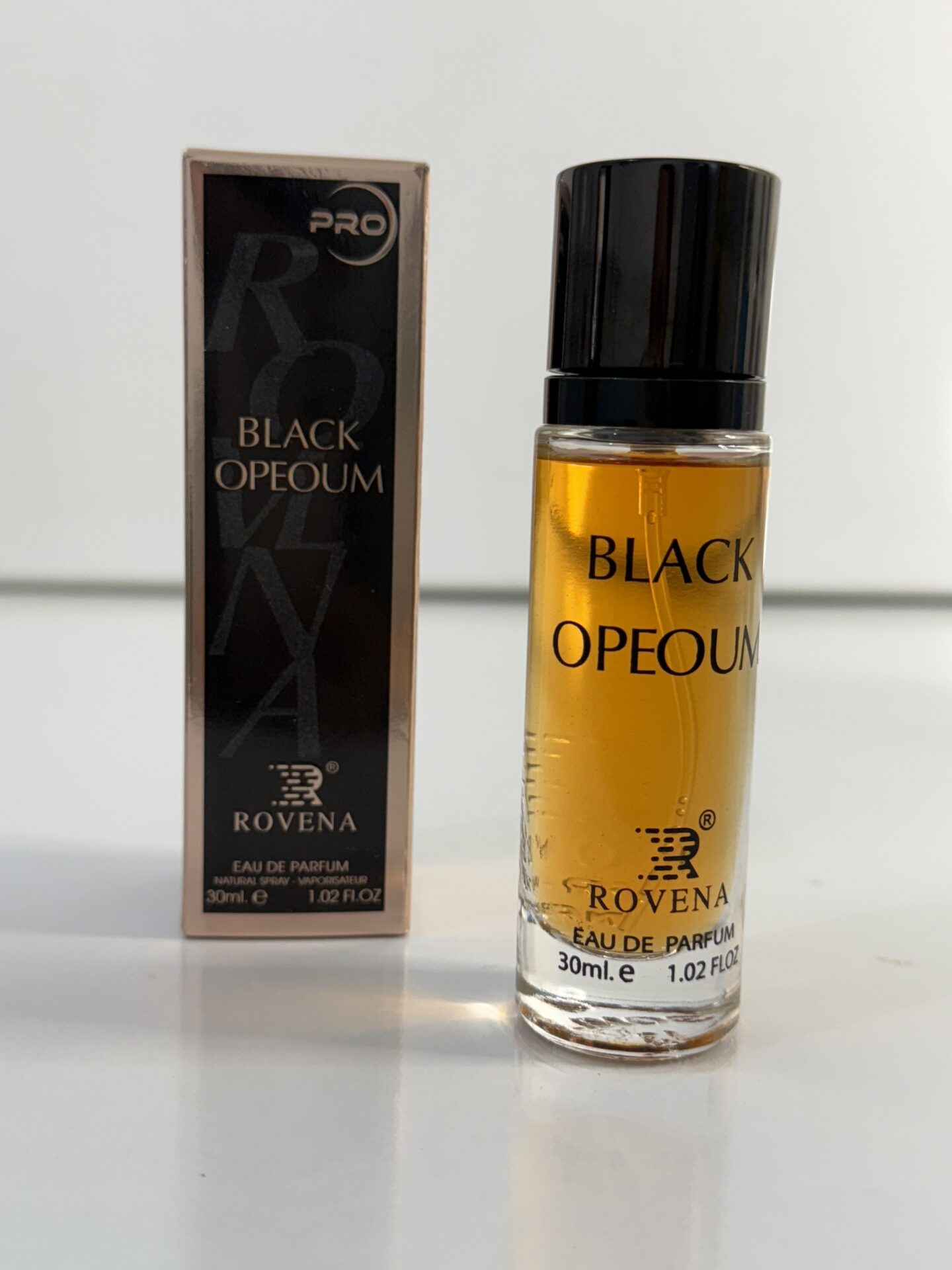 ادکلن بلک اوپیوم روونا (Rovena Black Opium) با حجم ۳۰ میل، عطری زنانه، گرم و شیرین است که از عطر محبوب و پرطرفدار Yves Saint Laurent Black Opium الهام گرفته است. این عطر با ترکیب نت‌های قهوه، وانیل و گل‌های سفید، رایحه‌ای اغواگر و انرژی‌بخش را ایجاد می‌کند که مناسب خانم‌های مدرن و جذاب است.